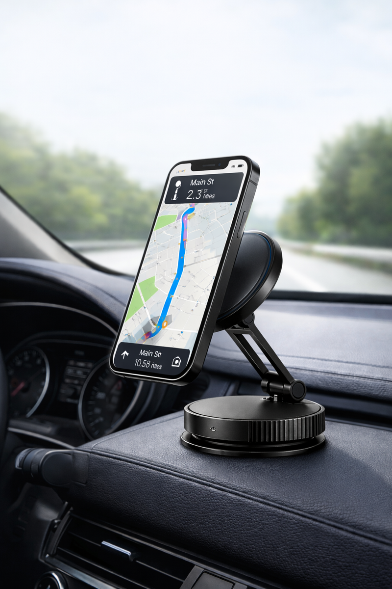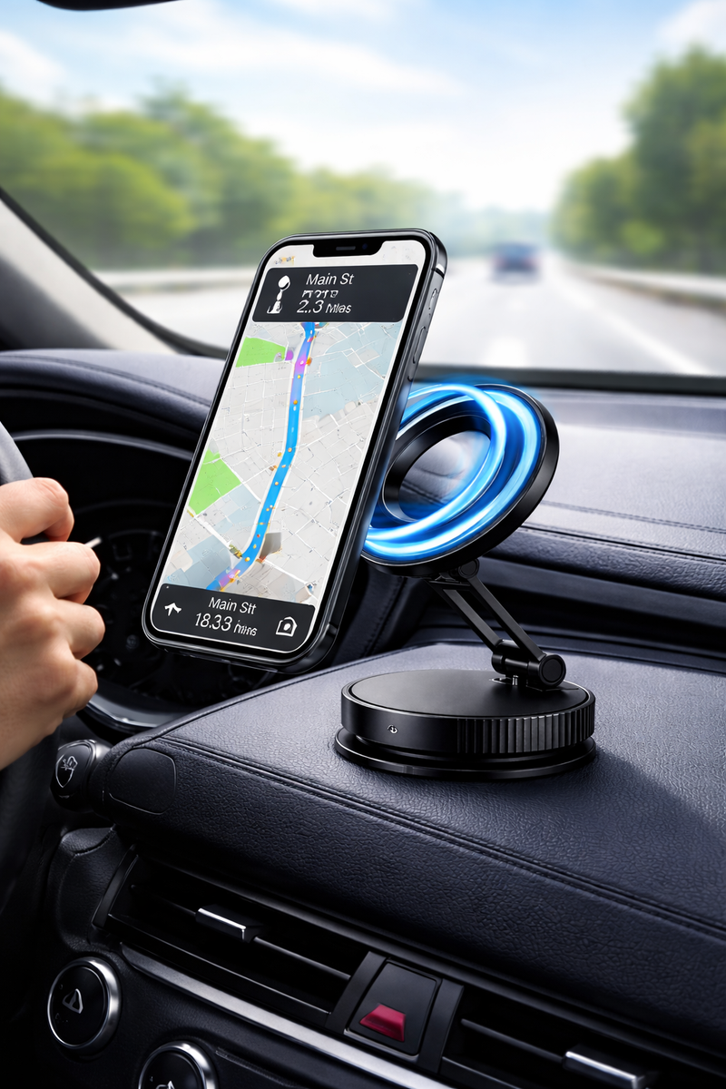 Powerful built-in magnets lock your phone in place, even on bumpy roads or sharp turns.